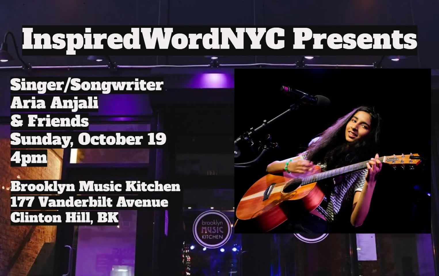 Whether at the piano or on guitar, she captivates audiences with evocative lyrics and melodies that linger long after the last note. Inspired by the poetic honesty of Jim Croce and Bob Dylan, as well as the theatrical flair of Queen, Aria’s sound is both intimate and powerful. She’s already left her mark on stages like The Triad Theater, City Winery, the Towne Crier, the Bluebird Cafe, and Fox & Locke. With her debut EP—recorded in Nashville—on the horizon, Aria Anjali is quickly becoming an artist to watch.